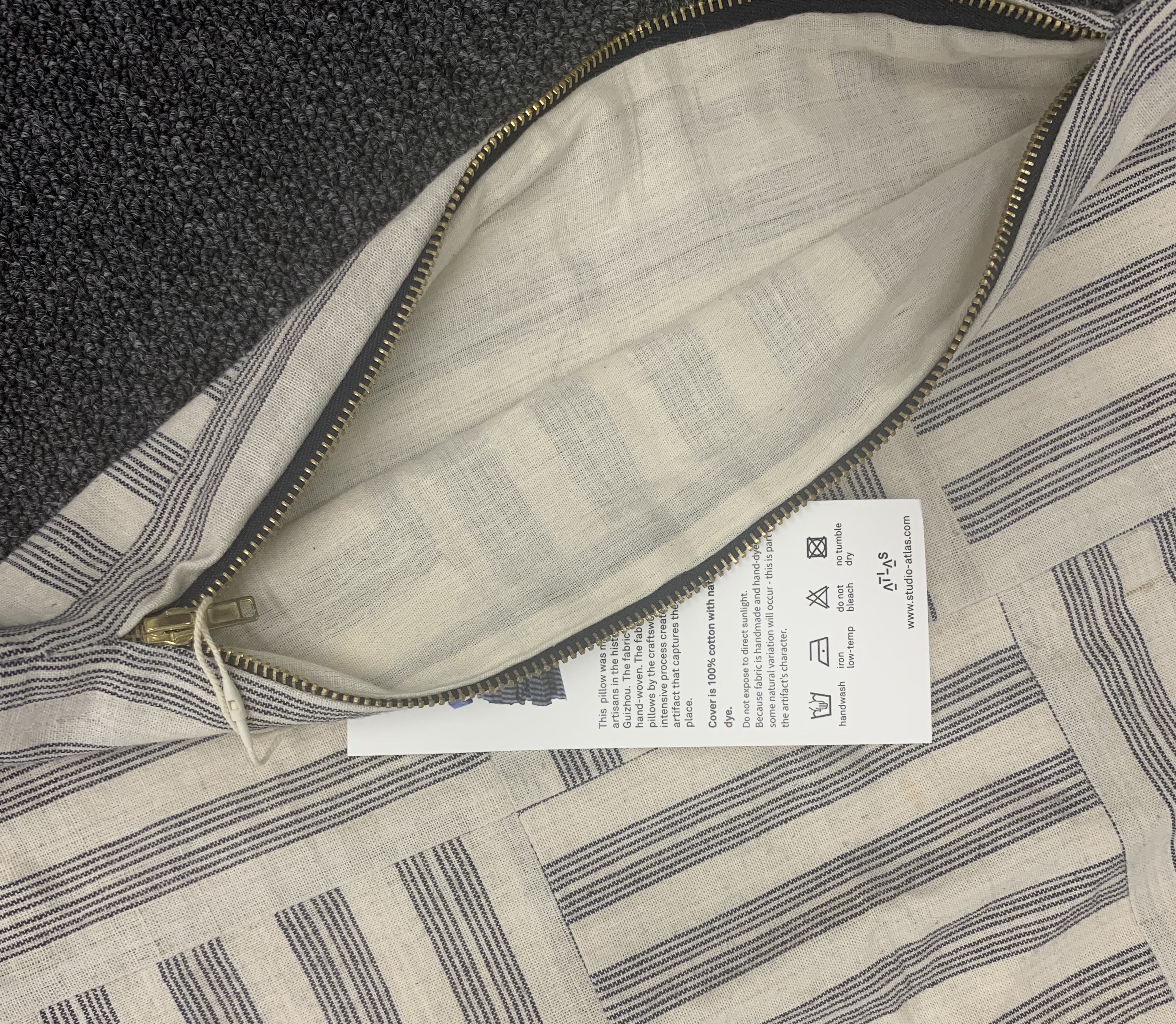 The cushions are made from handwoven fabric, dyed by hand and sewn by the woven of Dali.Making is seasonal and social and a fabric can take several years to weave, dye and finish.