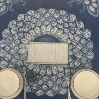100% cotton tablecloth, tie-dyed with natural indigo using traditional techniques and intricately embroidered by the Bai community.